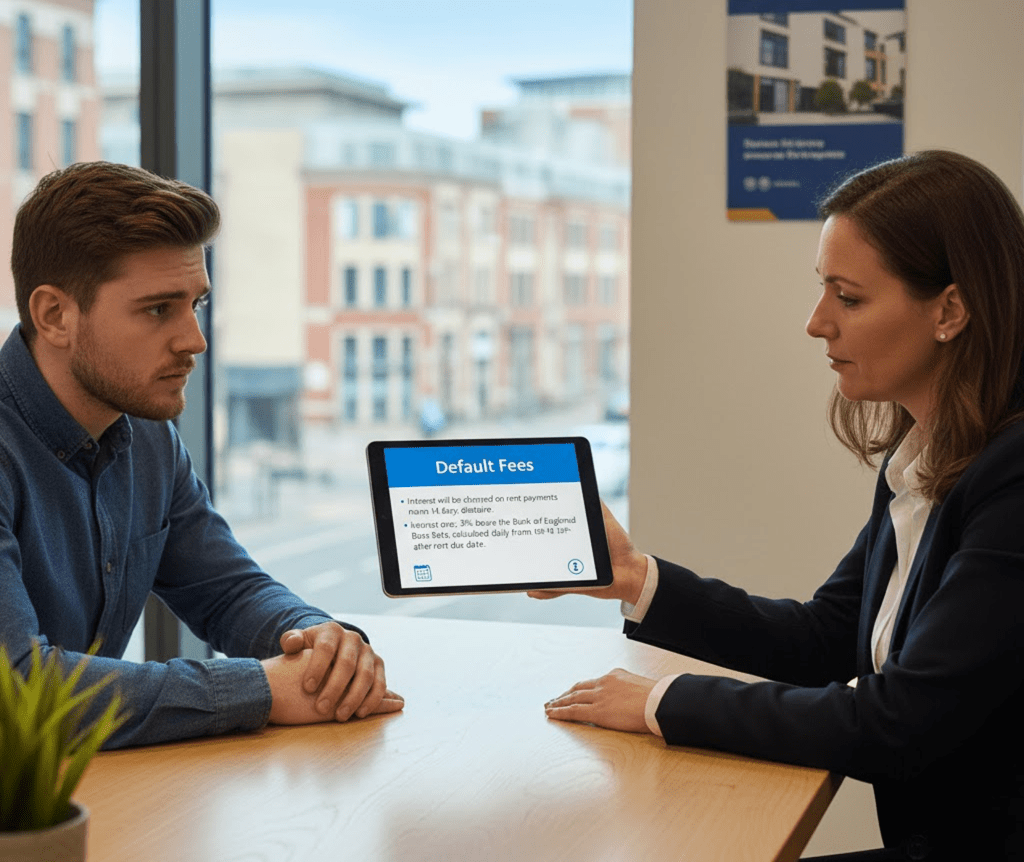 - Interest rate: 3% above the Bank of England Base Rate, calculated daily from the 15th day after the rent due date.
